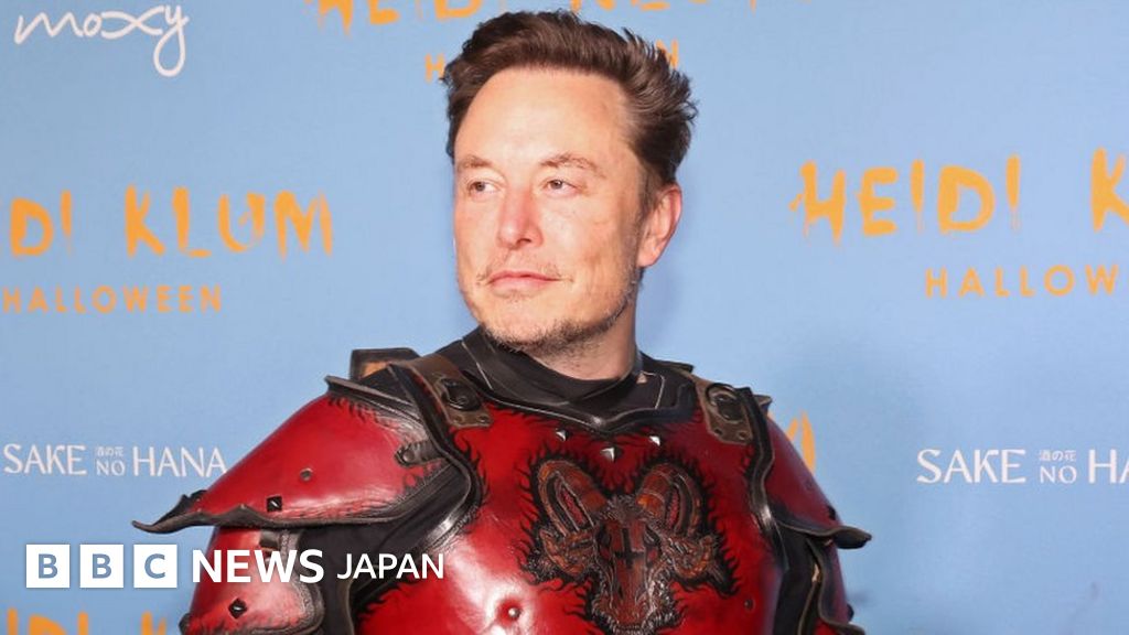 画像説明, ハイディ・クラム氏のハロウィーン・パーティーに出席したマスク氏(10月31日、ニューヨーク)