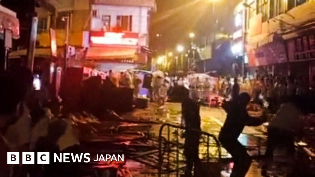 ネットに投稿された映像では、白い防護服を着た警官らが盾を手に、抗議者が投げつけるがれきやガラスから身を守っている。