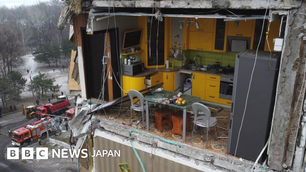 ロシアのミサイル攻撃を受けたウクライナ東部ドニプロの集合住宅の写真が、ソーシャルメディアで衝撃と悲しみを呼んでいる。外壁が失われて丸見えになった台所には、黄色いシステムキッチンが見える。