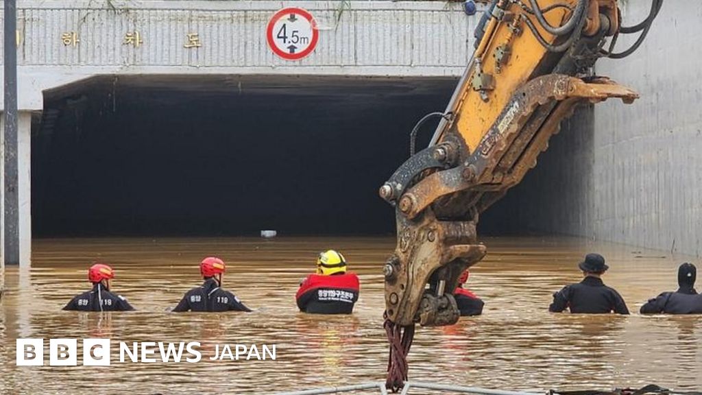韓国の大雨被害、水没した地下車道から13人の遺体
