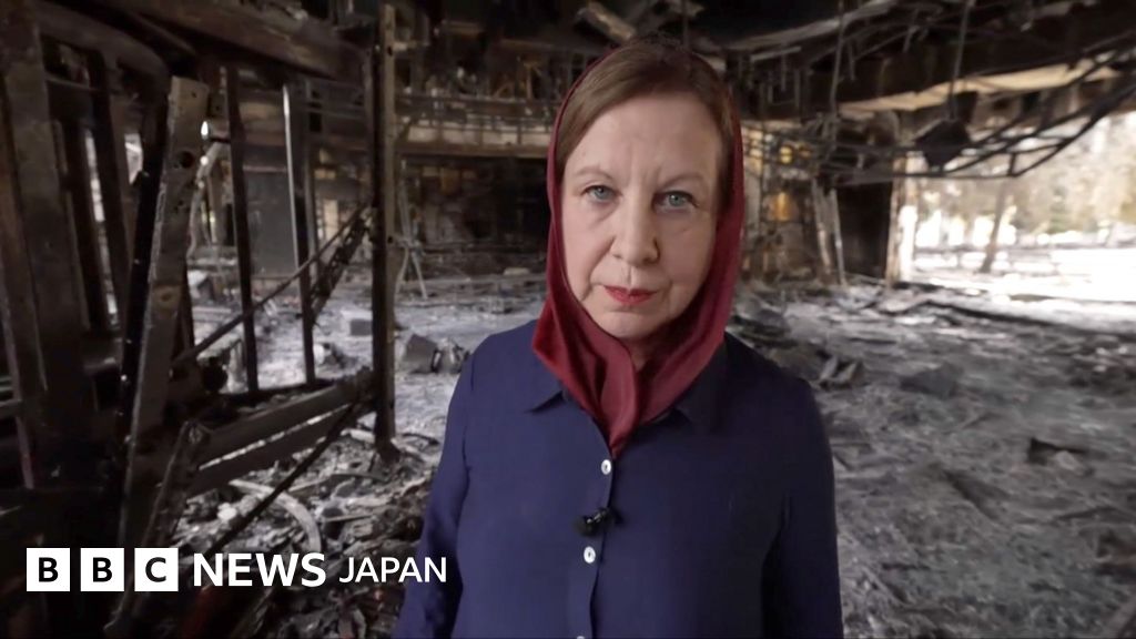 イスラエルの攻撃受けたイラン国営テレビ局、黒焦げのスタジオをBBC記者が取材