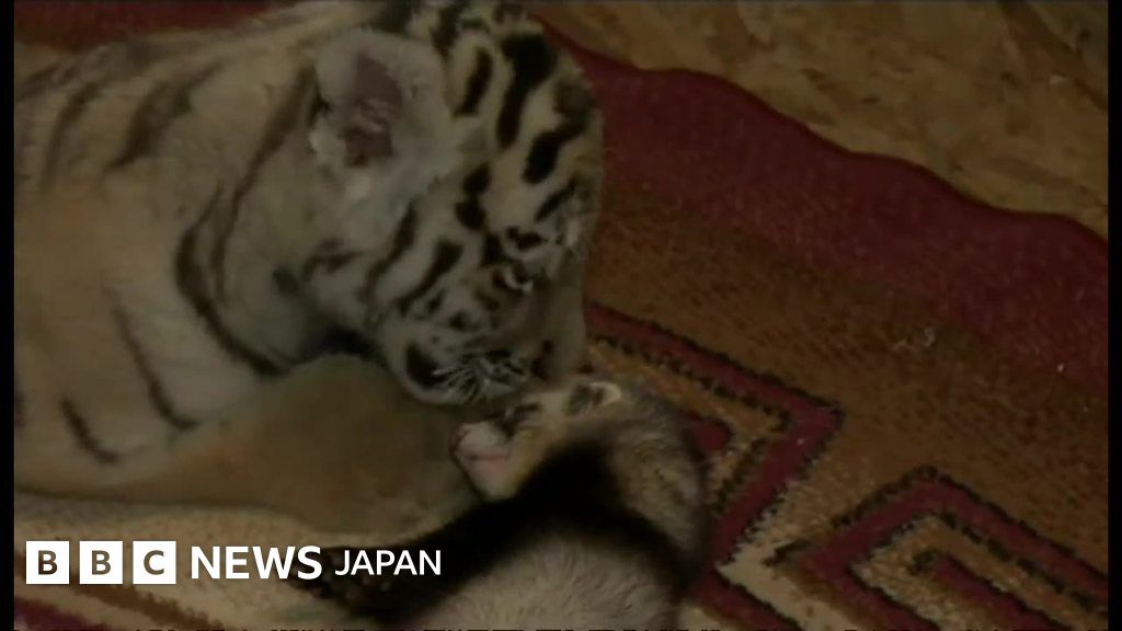 ロシア東部の沿海地方にあるサファリパークで生まれたトラの赤ちゃんがフェレットと仲良しになり、話題を集めている。
