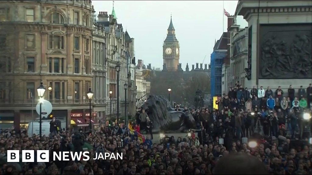 ロンドンのトラファルガー広場で23日夕、前日の議事堂周辺襲撃による犠牲者をしのぶ集会が開かれ、大勢が集まった。