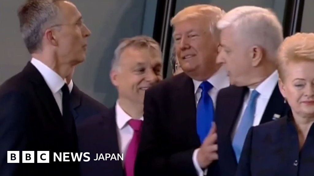この演説の前には、モンテネグロのドゥシュコ・マルコビッチ首相を押しのけて前に立つかのようなトランプ氏の様子が撮影されていた。
