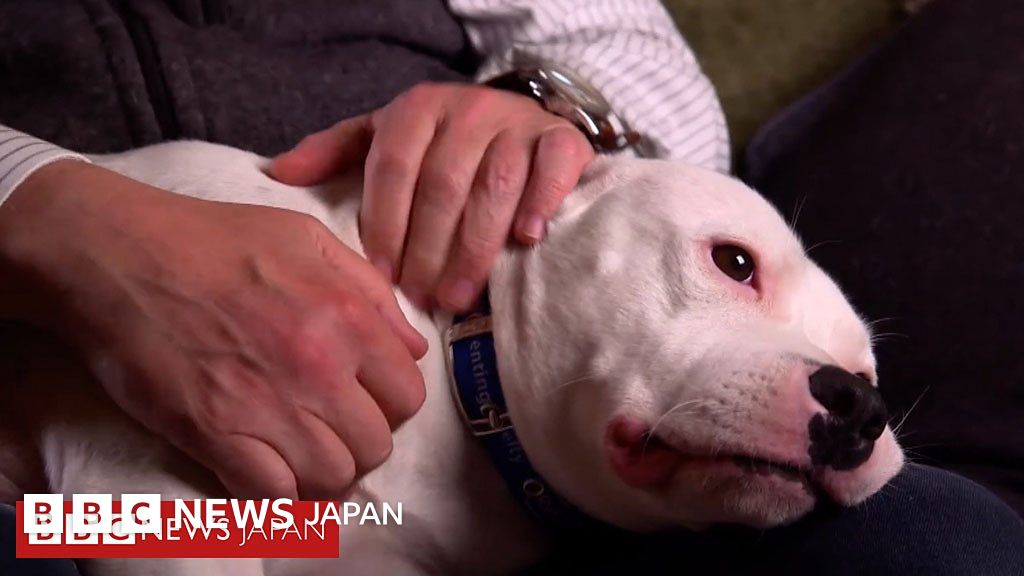 クリスマス前に路上で置き去りのブルテリア、新しい飼い主に可愛がられ
