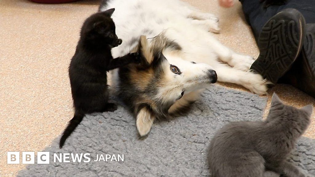 動画説明, ボーダーコリーが子猫6匹の「里親」に イギリス