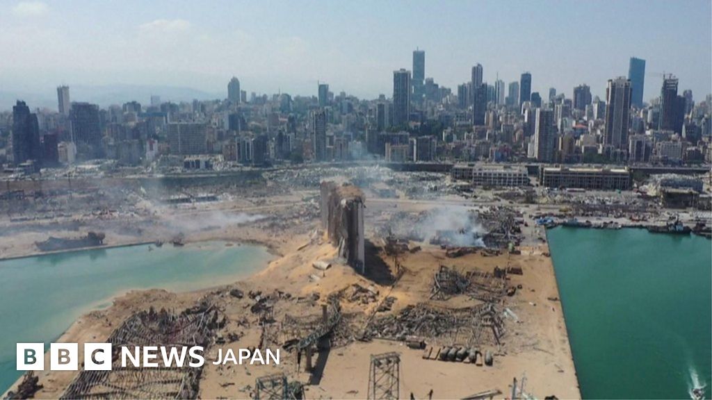 大規模な爆発が4日にあったレバノン・ベイルートの港湾地区をドローンで空撮した。