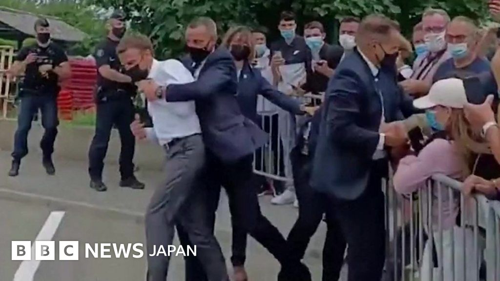 マクロン仏大統領、訪問先で顔面を平手打ちされる