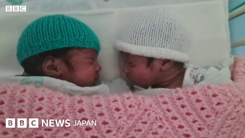 赤ちゃんと最初に対面したのは、夫とのビデオ通話の時だった。実際に双子を抱いたのは、出産から41日後だったという。