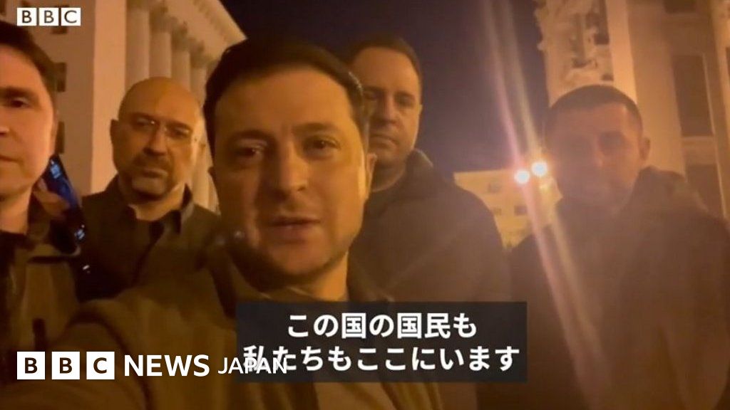 首都で撮影した動画でゼレンスキー氏は政府幹部たちと共に、「自分たちはここにいる」と示し、「私たちは全員、自分たちの独立と国を守る」と強調した。