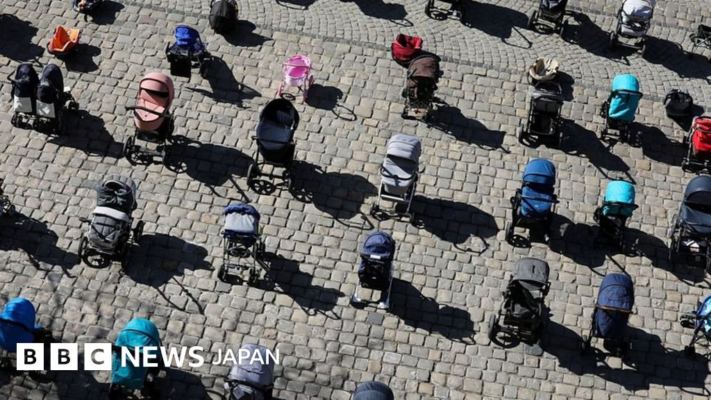 空のベビーカー並べ、殺された子供たちを追悼 ウクライナ侵攻