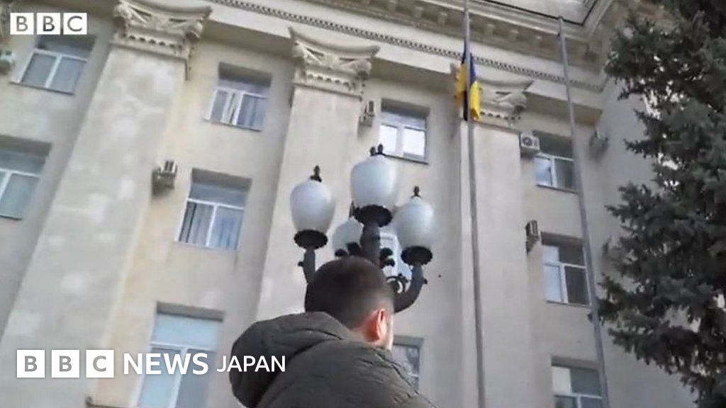 市庁舎を訪れたゼレンスキー大統領は、ウクライナ軍のヘルソン反攻を指揮したディミトロ・マーチェンコ少将と握手を交わし、居並ぶ兵士たちに感謝した。ウクライナの自由と解放を歌う国歌「ウクライナは滅びず」が響くなか、市庁舎にウクライナの旗が掲揚された。