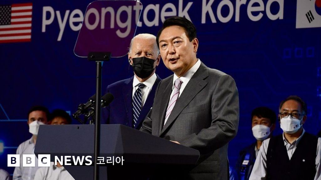 사진 설명, 윤석열 대통령은 미국에서 조 바이든 대통령을 만날 예정이다