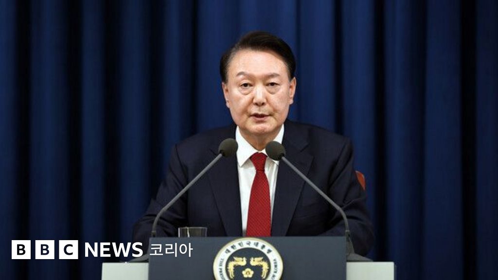 사진 설명, 윤석열 대통령이 지난 3일 밤 서울 용산 대통령실 청사에서 긴급 대국민 특별 담화를 하고 있다