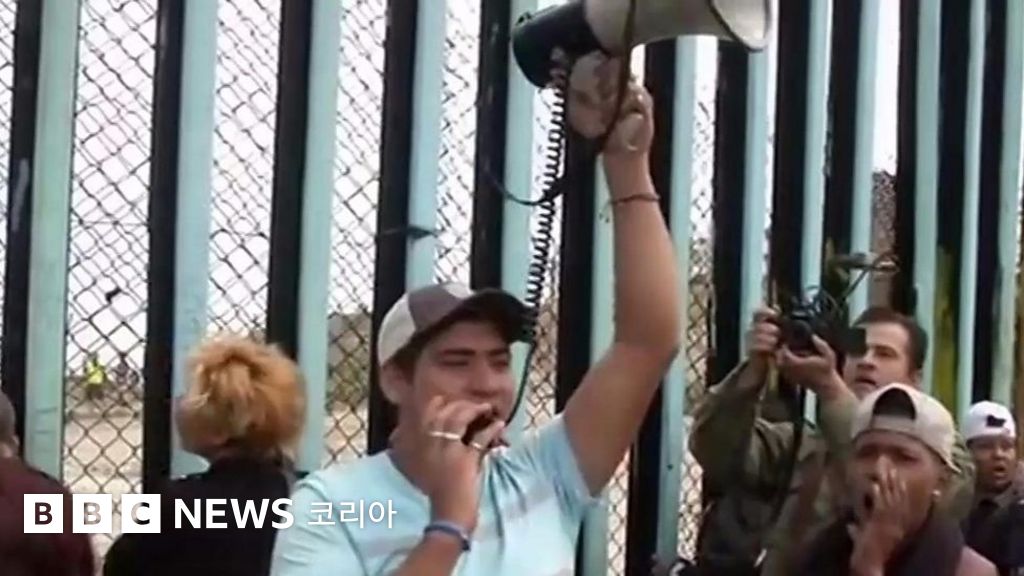 미국으로 망명을 요구하며 미국-멕시코 국경 장벽에 도착했다.