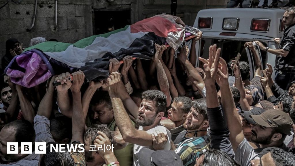 이스라엘의 총탄에 숨진 팔레스타인 의료진 장례식