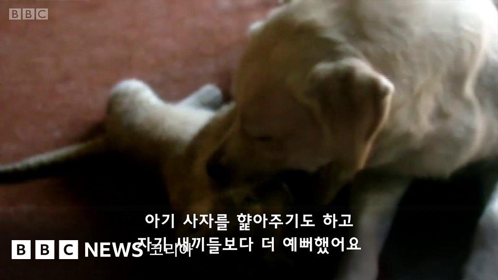 동물: 새끼 사자를 사랑한 어미 개