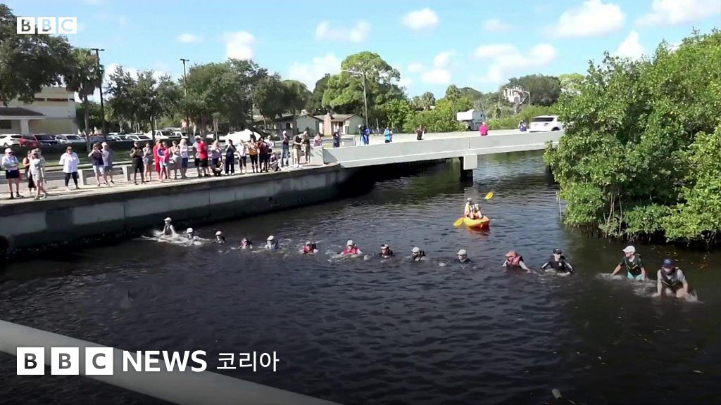 플로리다 운하에 수일째 갇힌 돌고래 네 마리를 '인간 띠'를 만들어 구조했다.