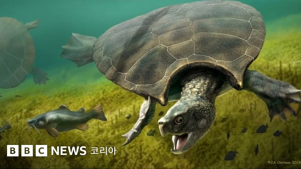 자동차 한대 크기 만한 초대형 고대 거북의 등딱지 화석이 발견됐다.