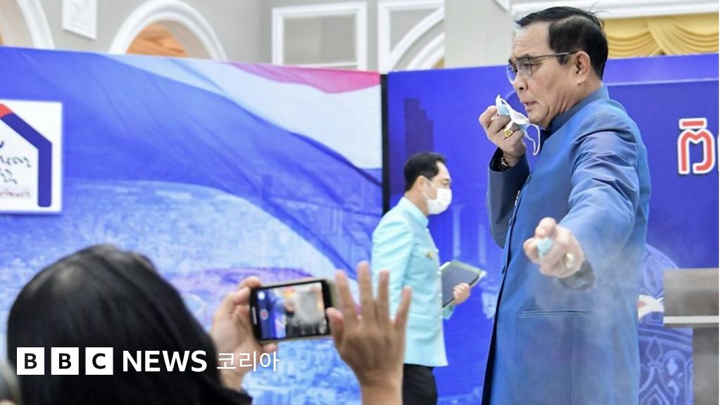 쁘라윳 짠오차 태국 총리가 기자회견장에서 날선 질문을 하는 기자들에게 손소독제를 뿌려 논란이다.