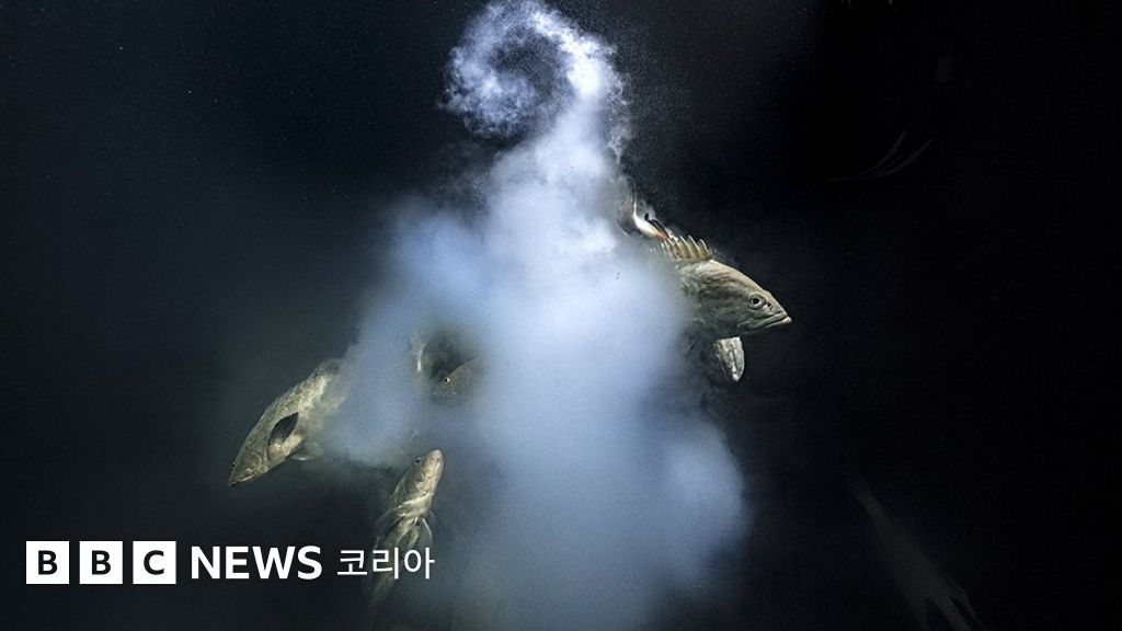 마치 물속에서 폭발이 일어난 것 같다. 암컷 카모플라쥬 그루퍼(Camouflage grouper)가 난자를 배출하자 수컷이 달려들어 서둘러 정자를 배출한다.