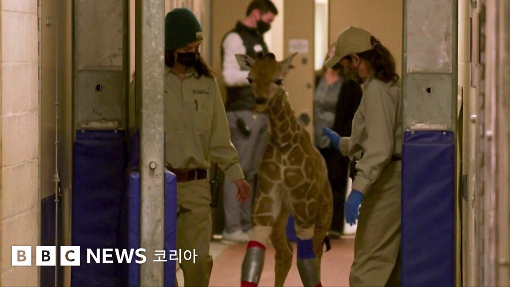 동물: 맞춤형 보조기 차고 다시 걷게 된 아기 기린