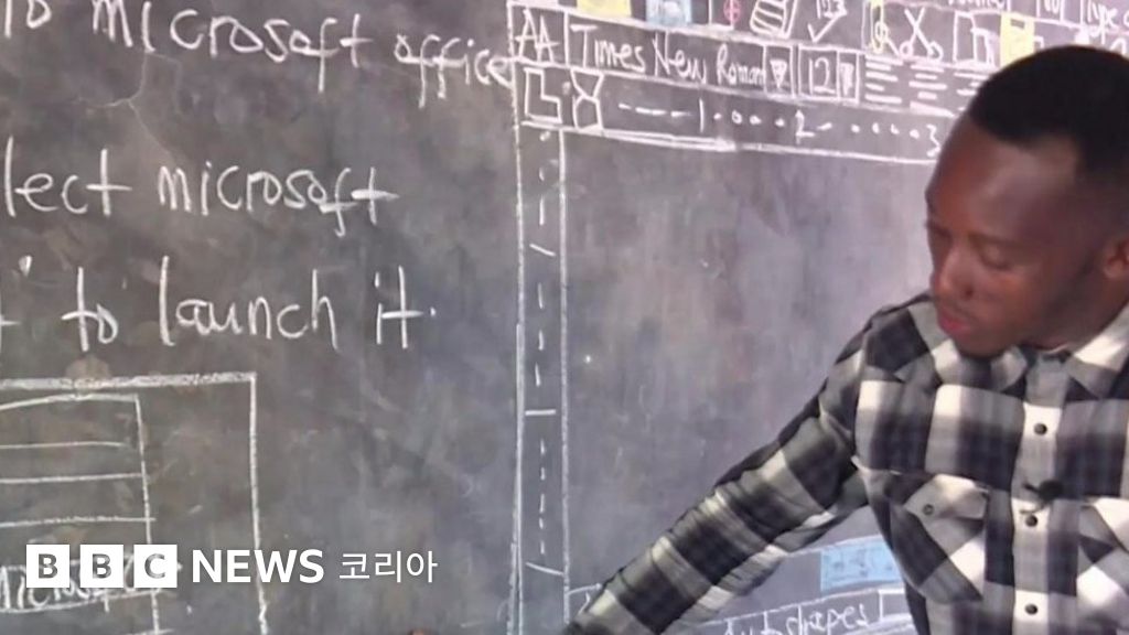 가나의 한 교사가 칠판에 그림을 그려 학생들에게 검퓨터를 가르치고 있어 화제다.