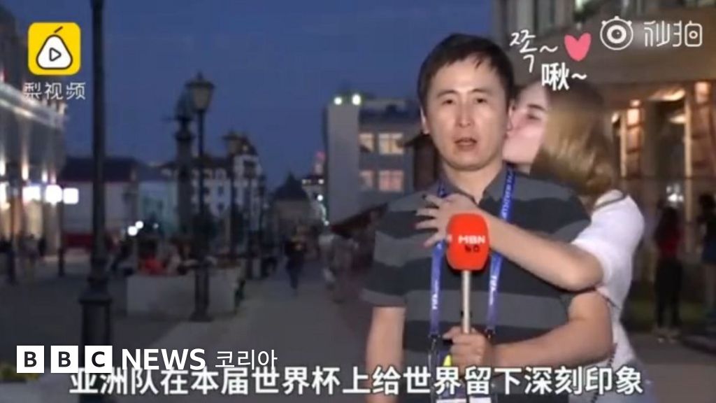 리포트 중 뽀뽀 받은 한국 남자 기자...중국서 '성추행 여부' 로 논란