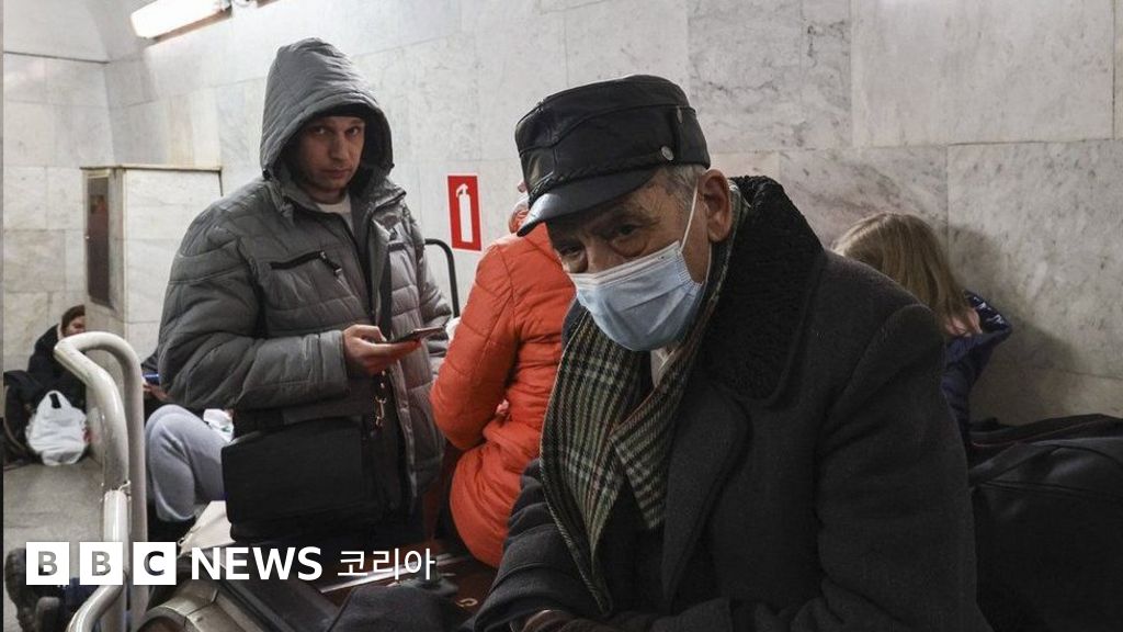 우크라이나 침공: 러시아 로켓포 공격에 피신하는 우크라 주민들