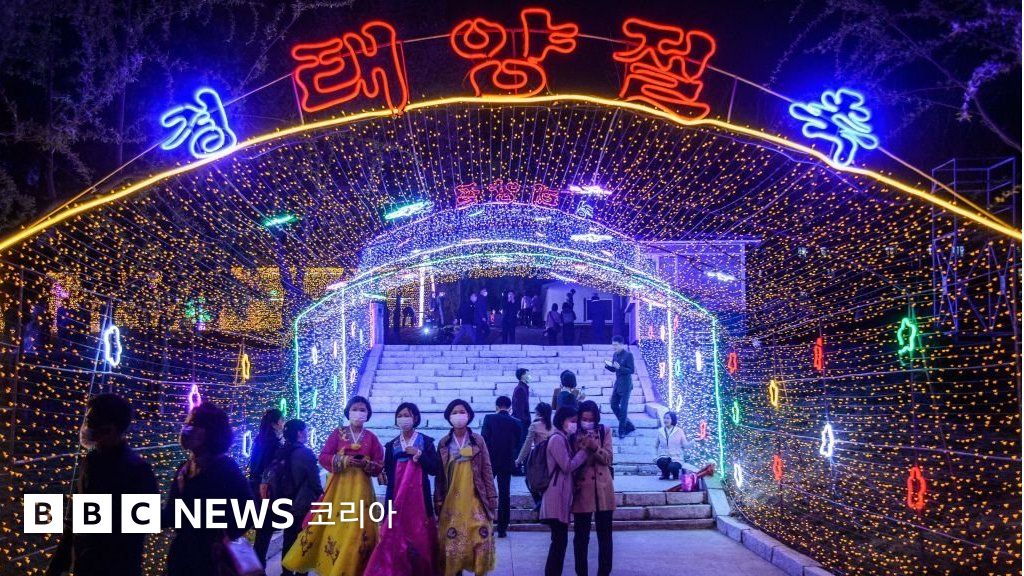 북한은 태양절을 맞아 하루 전인 14일부터 조명 축전과 경축 무도회를 진행하고 있다.