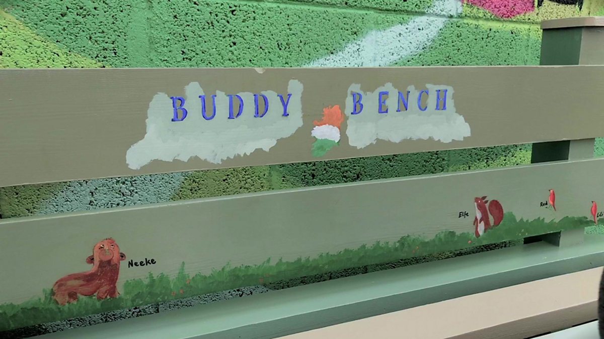Benches like this have been around for a while now in many schools. But in Ireland, they are trying to do something a bit different with them. This school in Cork in the south of Ireland is the 247th to get one from a social enterprise called Buddy Bench Ireland that doesn't just provide schools with benches, it also runs special workshops with trained child psychiatrists.