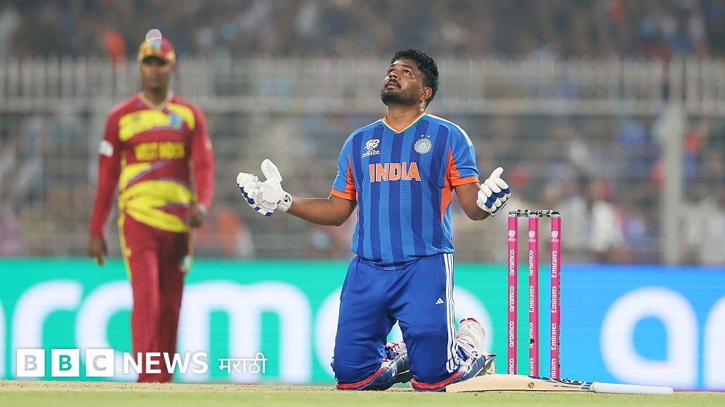 सॅमसननं ट्वेन्टी20 विश्वचषकातलं त्याचं पहिलं अर्धशतक साजरं केलं. त्यानं सूर्यासह तिसऱ्या विकेटसाठी 35 चेंडूंमध्ये 28 धावांची भागीदारी रचली.