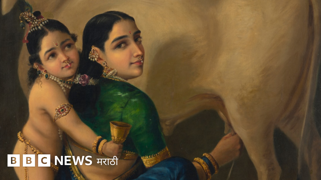 "रेशमी वस्त्रांची पोत, दागिन्यांची झळाळी, त्वचेची कोमलता आणि गायीची शांत स्थिरता यामुळे हे दृश्य भक्तिभावपूर्ण आणि जिव्हाळ्याचे वाटते," असे या चित्राचे वर्णन बंगळुरूस्थित रवी वर्मा हेरिटेज फाउंडेशननं एका पोस्टमध्ये केले आहे.