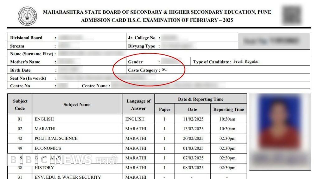 फोटो कॅप्शन, जात प्रवर्गाचा उल्लेख असलेले हॉलतिकिट.