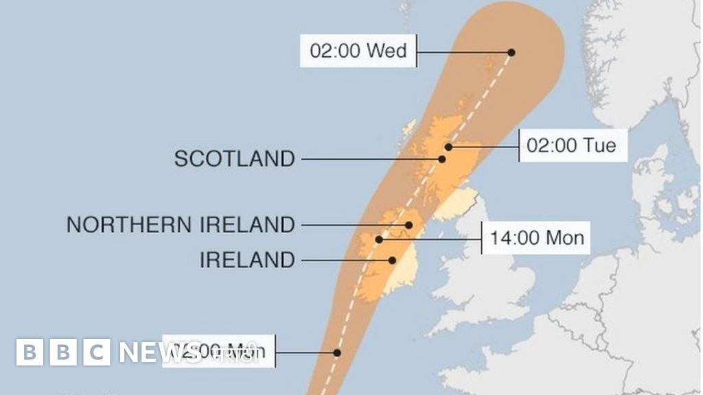 आयर्लंड सरकारच्या हवामान खात्यानं देशभरात रेड विंड अर्थात अतिधोक्याचा इशारा दिला आहे. हे चक्रीवादळ सोमवारी इंग्लंडच्या किनाऱ्यावर धडकण्याची शक्यता असून, तोपर्यंत त्याची तीव्रता कमी होणार आहे.