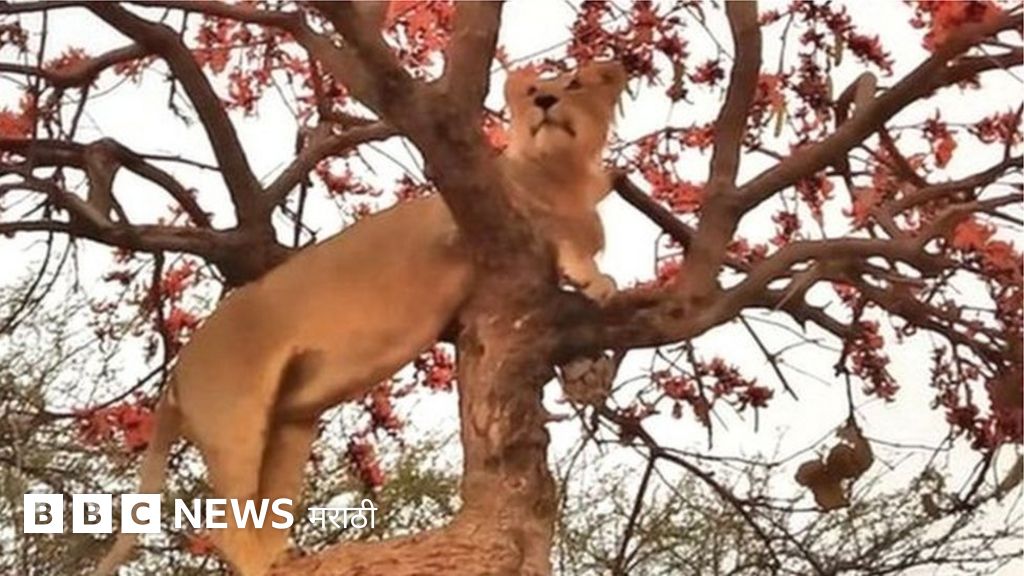 बीट गार्ड दीपक वाढेर यांनी सांगितलं, की गीर अभयारण्यात गस्त घालत असतानाच मी एक सिंह पाहिला. थोड्याच वेळात हा तरूण सिंह झाडावर चढला.