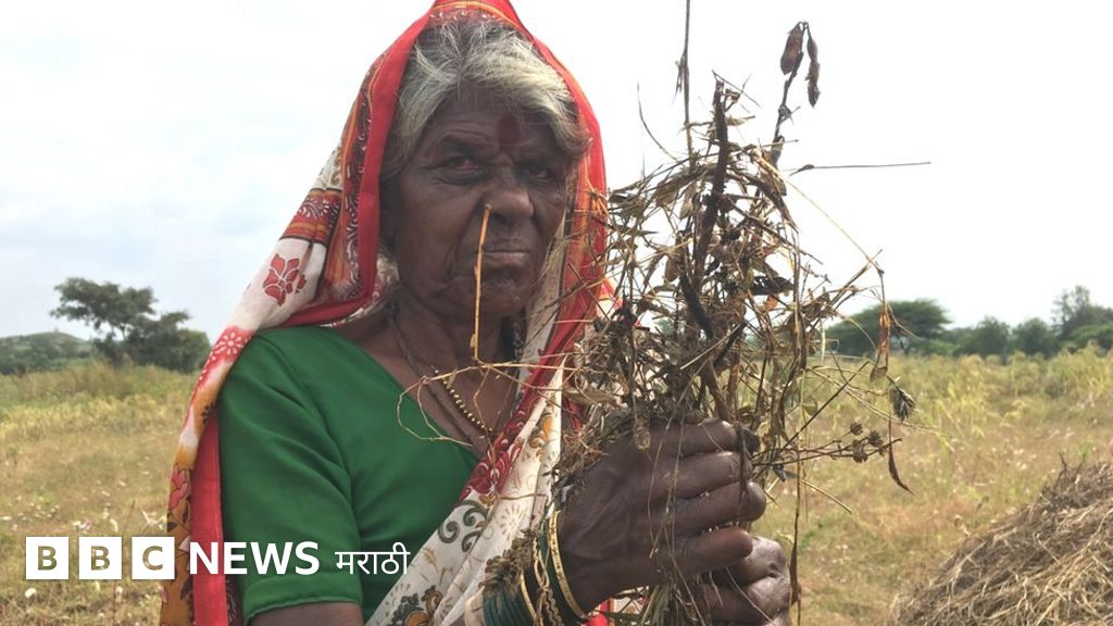 "तेराशे रुपयाची सोयाबीनची बॅग आणल्ती. जावयानं पेरणीसाठी मदत केल्ती. महागामोलाचं खत टाकलं. पण पावसानं दमच धरला नाही. निंदता आलं नाही म्हणून गुडघाभर गवत झालं. एक एक काडी वेचून सोयाबीन सोंगती.