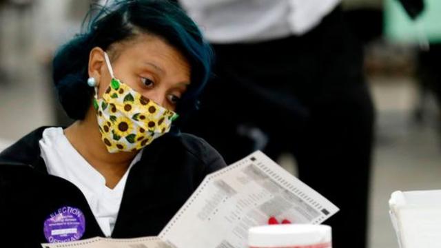 फोटो कॅप्शन, मिशिगन इथं पोस्टाद्वारे आलेली मतं मोजताना कर्मचारी विस्कॉन्सिनमध्ये बायडन यांची आघाडी