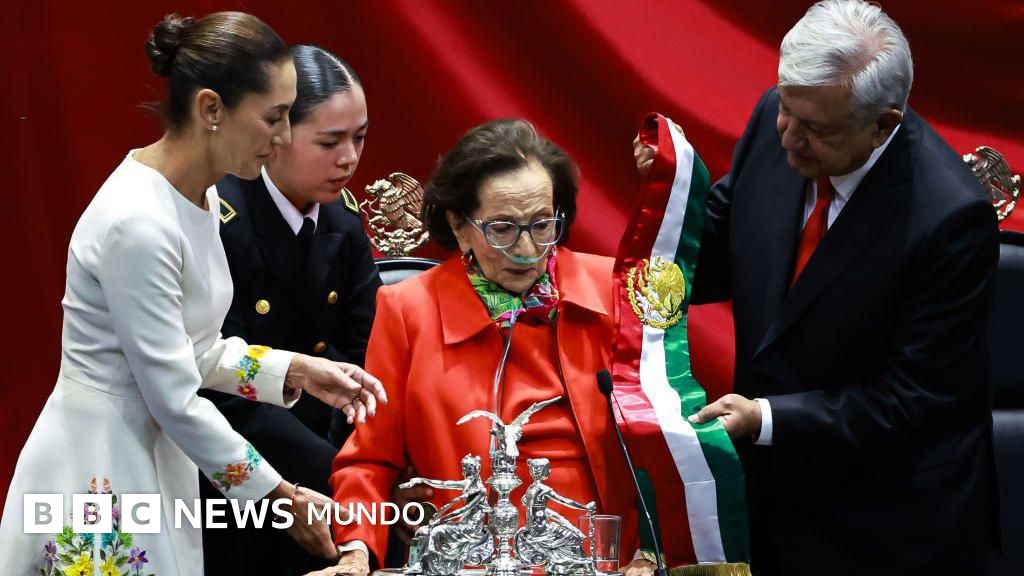 En la ceremonia en la sede del Congreso, Sheinbaum recibió la Banda Presidencial -la prenda que solo puede portar al presidente de México- de la mano de una figura histórica de la política mexicana: Ifigenia Martínez.