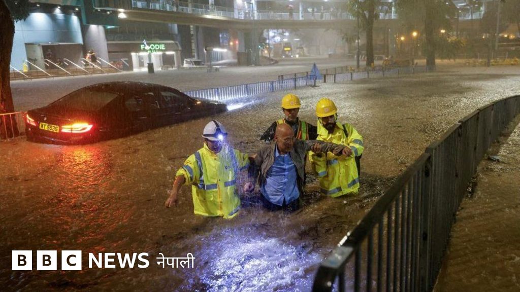 हङ्कङबाट प्राप्त तस्बिरहरूमा बिहीवारको मुसलधारे वर्षाले त्यहाँका सडकलाई बाढी उर्लेको खोला जस्तो बनाइदिएको देख्न सकिन्छ। शपिङ सेन्टर र सार्वजनिक यातायात सेवाहरू डुबानमा परेका छन्।