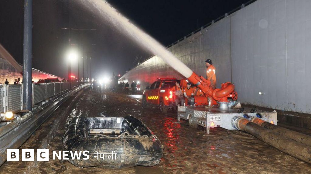 दक्षिण कोरियामा बाढी पसेको सुरुङ मार्गभित्र हराइरहेका मानिसहरूको खोजी