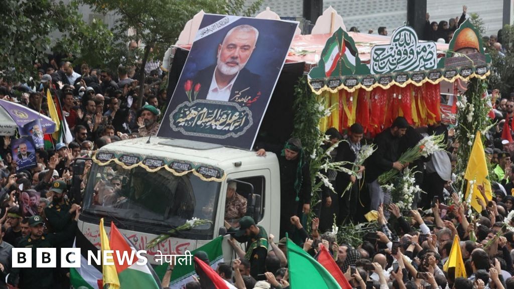 तेहरानमा रकेट आक्रमणमा मारिएका हमास नेता इस्माइल हानियाको शवयात्रामा हजारौँ मानिस सहभागी भएका छन्।