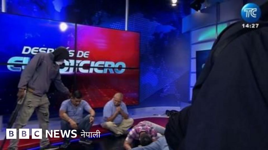 एक्वडोरमा एउटा स्थानीय टेलिभिजन स्टेशनमा प्रत्यक्ष प्रसारण भइरहेको बेला सशस्त्र व्यक्तिहरूले धावा बोल्दै पत्रकार र कर्मचारीहरूलाई आतङ्कित बनाएका छन्।