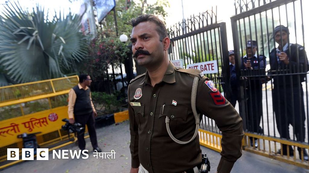तस्बिरको क्याप्शन, बुधवार नयाँ दिल्लीमा बीबीसीको कार्यालयबाहिर पहरा दिएर उभिरहेका एक प्रहरी