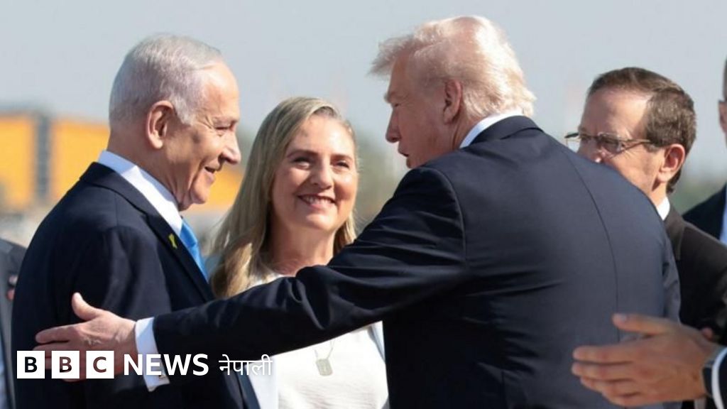तस्बिरको क्याप्शन, इजरेल जानका निम्ति एअर फोर्स वनमा चढ्नुअघि ट्रम्पले सञ्चारमाध्यमहरूसँग कुरा गरे
