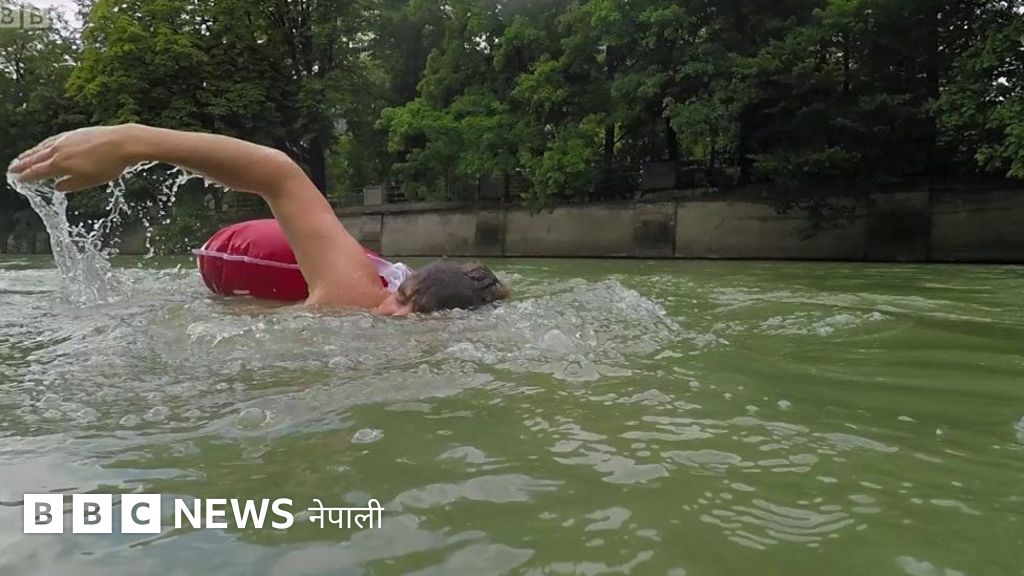 यी जर्मन पुरुष ट्राफिक समस्या यसरी पन्छाउँछन्, म्यूनिकका बेन्जमिन डेविड हरेक दिन २ किलोमिटर पौडेर नदी पार गर्छन् र काममा पुग्छन्।