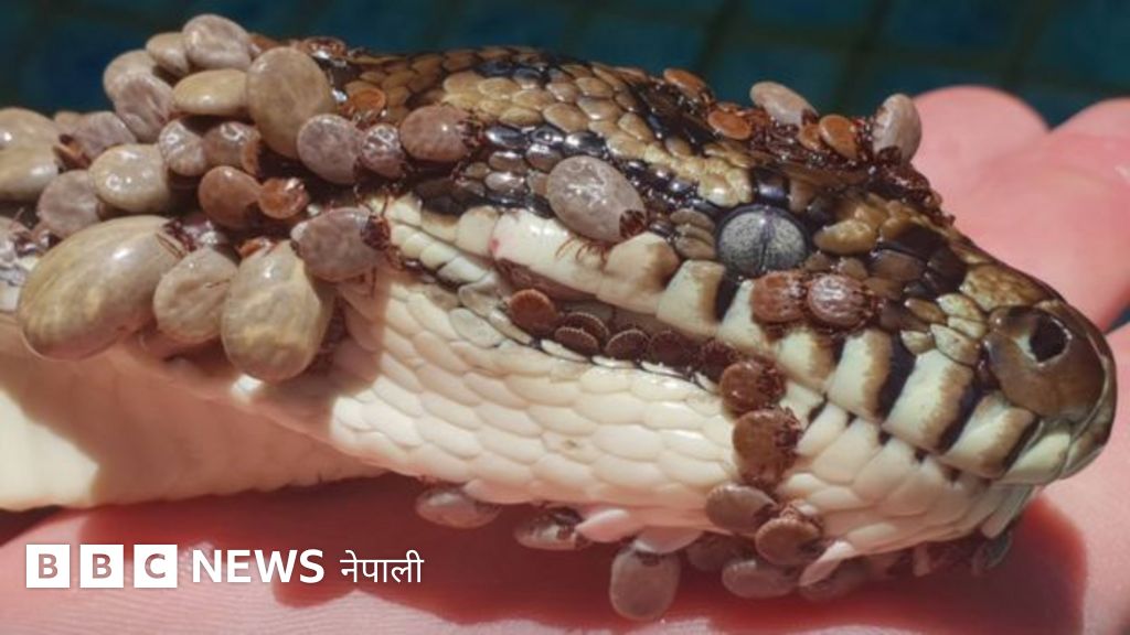 पशुचिकित्सकले सो सर्पमा टाँसिएका ५११ किर्ना झिकेका थिए।