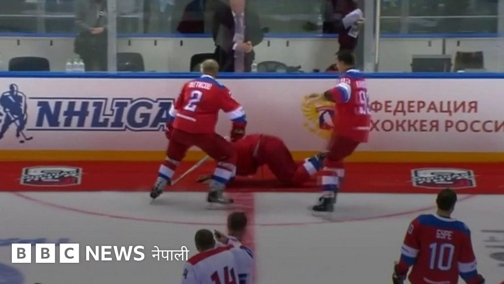 आठ गोल गरेका रुसी राष्ट्रपति पुटिन चिप्लिएर लडे