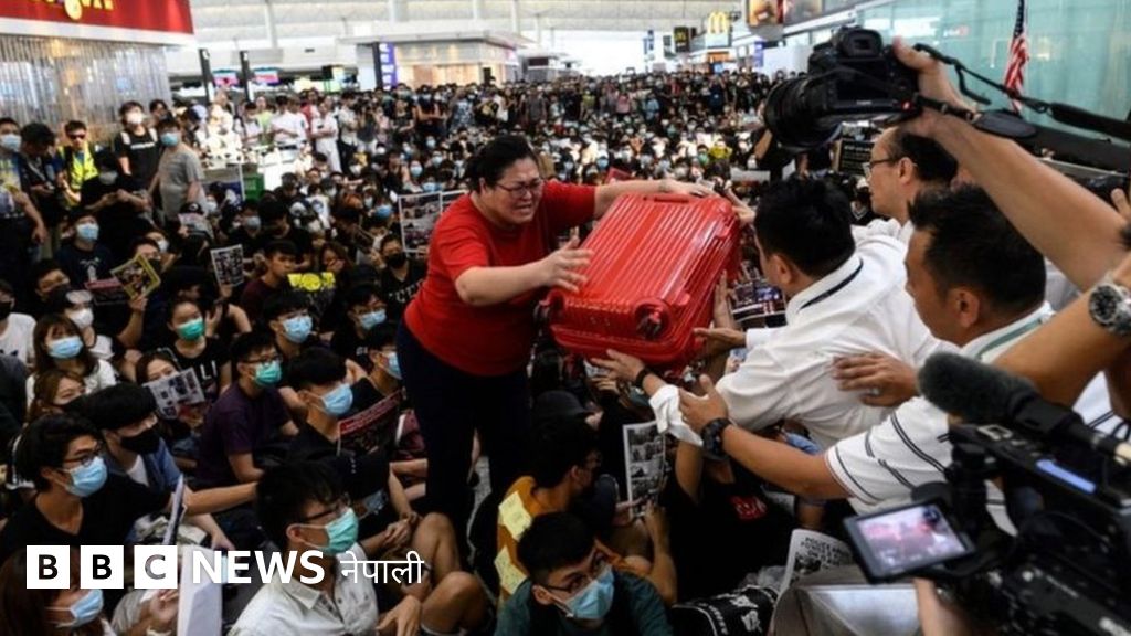 हङ्कङ विमानस्थलमा प्रदर्शनकारीले लगाए 'ट्रली'को बार, हज्जारौँ यात्रु प्रभावित