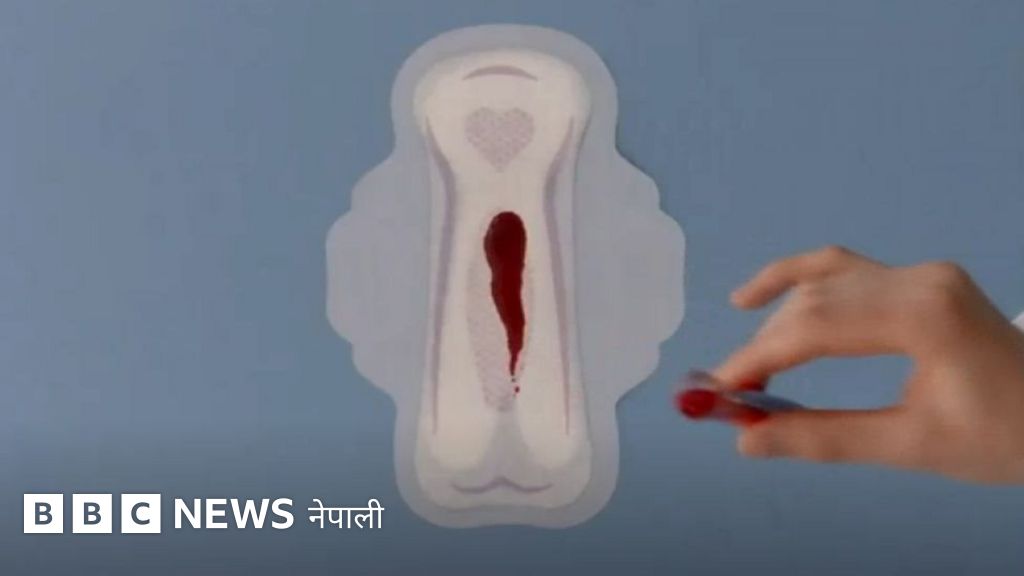 उक्त अभियानमा नीलो नभई रातो तरल पदार्थको दाग स्यानिटरी प्याडमा देखाइएको थियो।